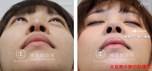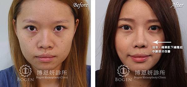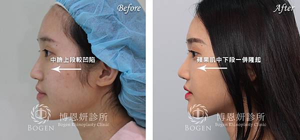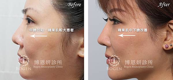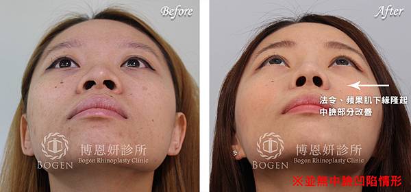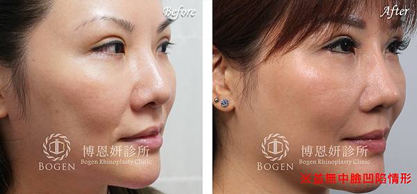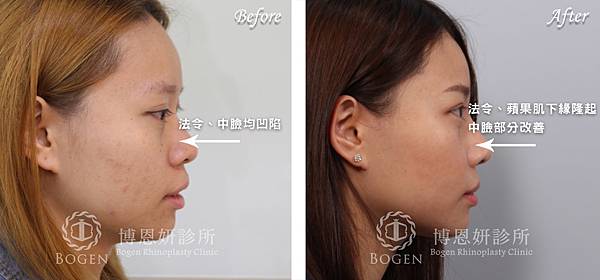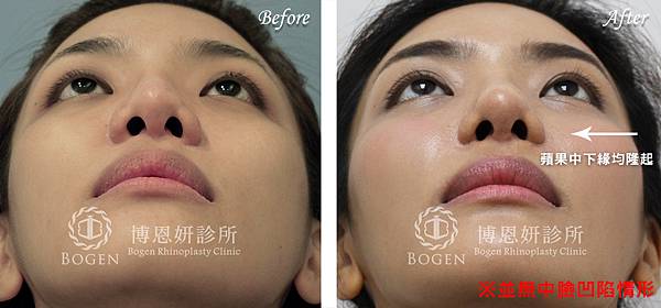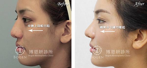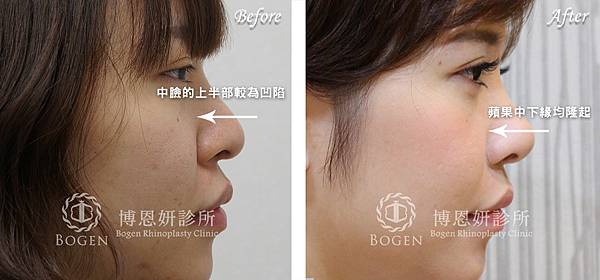(以上案例(術前術後均超過五個月)可以發現,一般台灣甚至亞洲人患者,上臉凹陷均比中臉厲害,貴族手術精確放置,可以順勢調整上臉的中下段,為一石二鳥的手術效果)